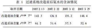 (2)蒸氨廢水是經(jīng)過過濾器和蒸氨塔處理后的廢水,水中的含油量相比氨水的少。過濾器后氨水含油在50~60mg/l之間,而蒸氨廢水含油正常在30mg/l。